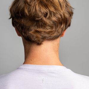 Our blank tees are branded with a stitched loop BOLT on the hemline and a small 3D silicone BOLT on the back of the neck.