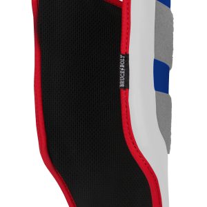 BRUCE BOLT’s PREMIUM PRO Elbow Guards feature a semi-moldable thermoplastic protective shell with a Cabretta leather outer and proprietary Sharkskin inner to prevent movement during the swing. 2 wide removable elastic strap locks the elbow guard in place providing maximum protection at the plate.