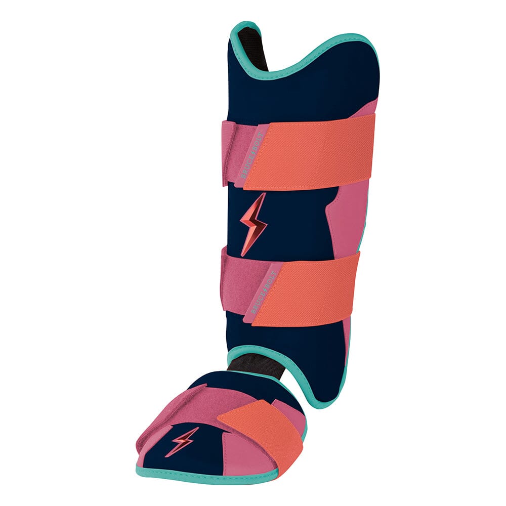 BRUCE BOLT’s PREMIUM PRO Leg & Ankle Guards feature a semi-moldable thermoplastic protective shell with a Cabretta leather outer and Shark Skin inner to keep the guard in place at the plate and while running the bases. 2 wide removable elastic strap locks the Leg guard in place providing maximum protection at the plate.