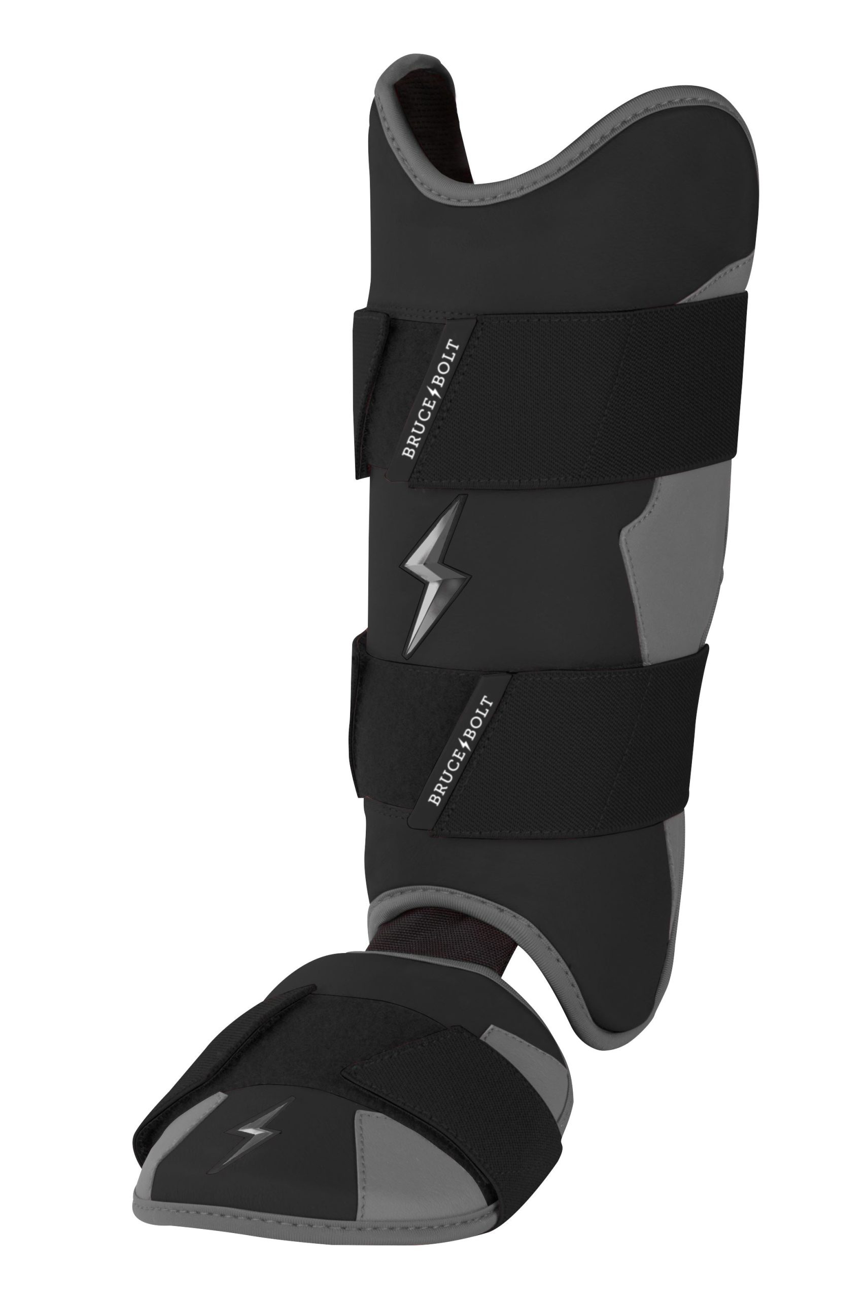 BRUCE BOLT’s PREMIUM PRO Leg & Ankle Guards feature a semi-moldable thermoplastic protective shell with a Cabretta leather outer and Sharkskin inner to keep the guard in place at the plate and while running the bases.? 2 wide removable elastic strap locks the Leg guard in place providing maximum protection at the plate.