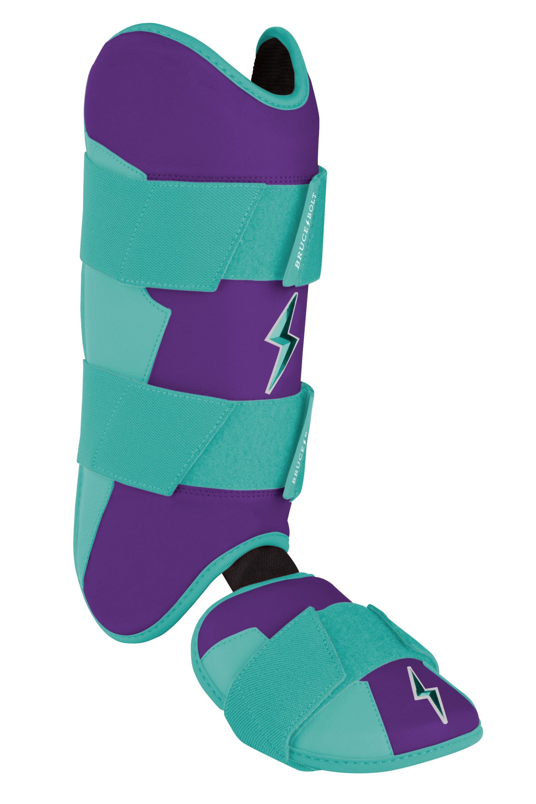 BRUCE BOLT’s PREMIUM PRO Leg & Ankle Guards feature a semi-moldable thermoplastic protective shell with a Cabretta leather outer and Shark Skin inner to keep the guard in place at the plate and while running the bases.? 2 wide removable elastic strap locks the Leg guard in place providing maximum protection at the plate.