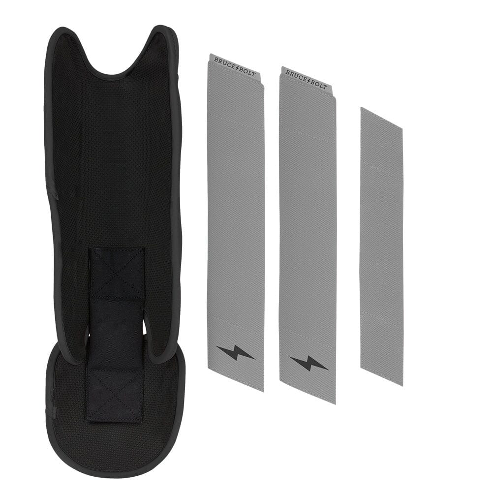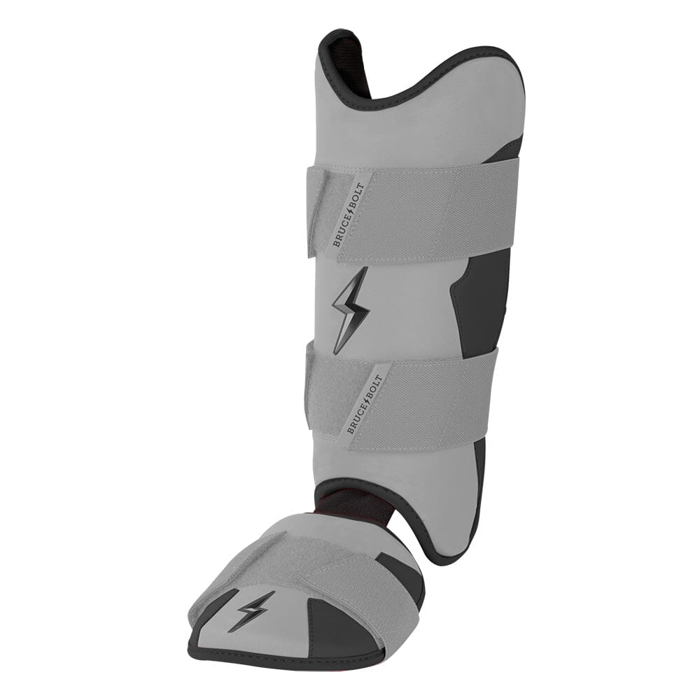 BRUCE BOLT’s PREMIUM PRO Leg & Ankle Guards feature a semi-moldable thermoplastic protective shell with a Cabretta leather outer and Shark Skin inner to keep the guard in place at the plate and while running the bases.? 2 wide removable elastic strap locks the Leg guard in place providing maximum protection at the plate.