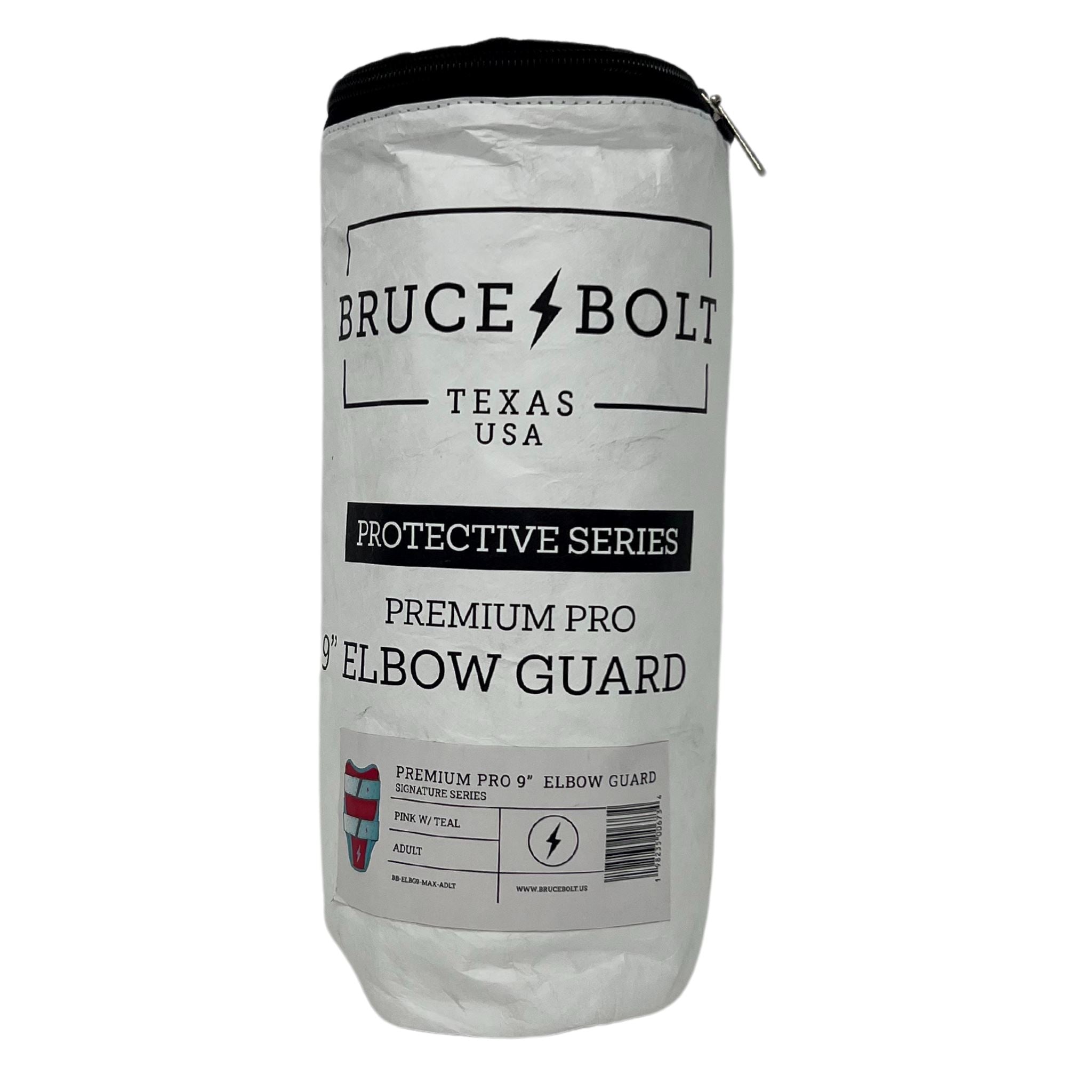 BRUCE BOLT’s PREMIUM PRO Elbow Guards feature a semi-moldable thermoplastic protective shell with a Cabretta leather outer and proprietary Sharkskin inner to prevent movement during the swing.? Two 2 wide removable elastic straps lock the elbow guard in place. providing maximum protection at the plate.