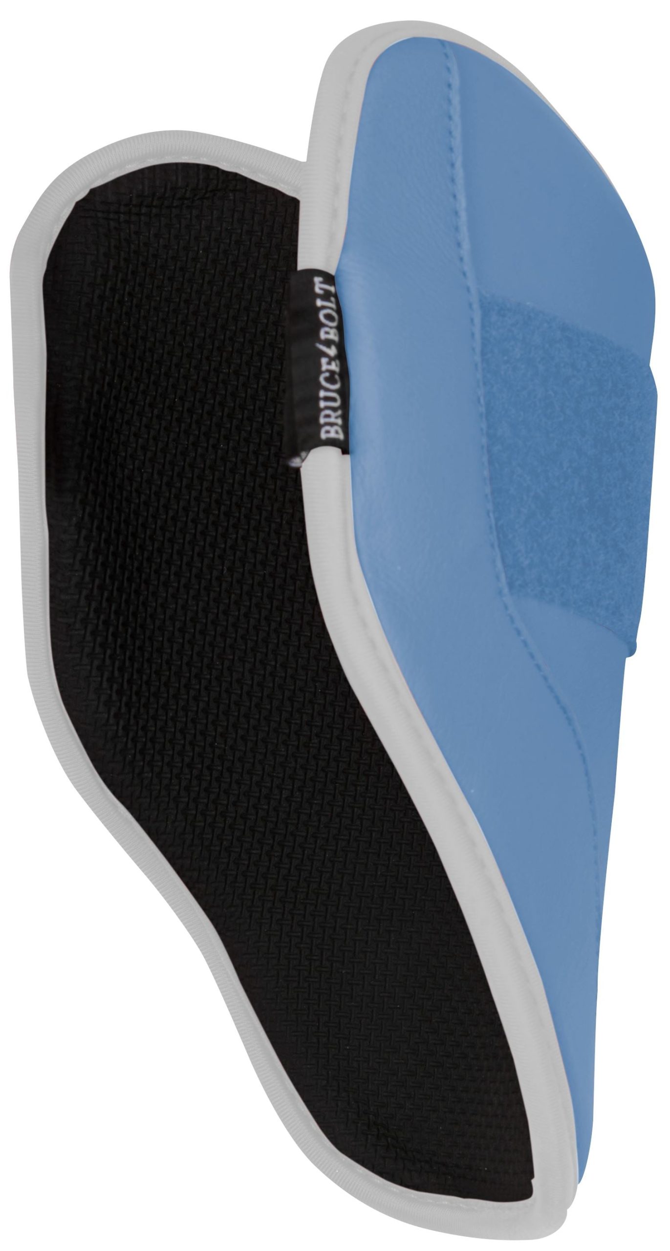 BRUCE BOLT’s PREMIUM PRO Elbow Guards feature a semi-moldable thermoplastic protective shell with a Cabretta leather outer and proprietary Sharkskin inner to prevent movement during the swing. 2 wide removable elastic strap locks the elbow guard in place providing maximum protection at the plate.