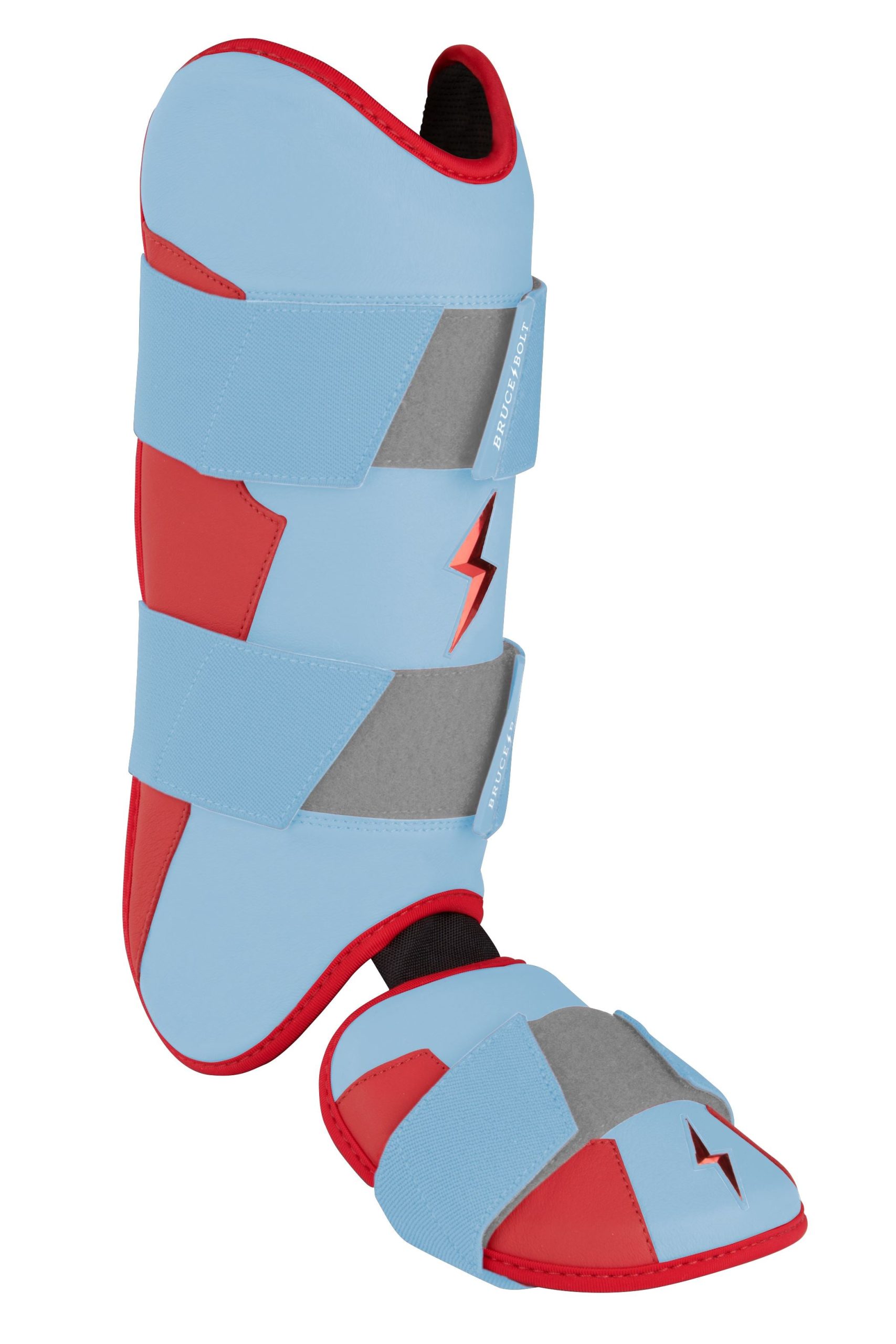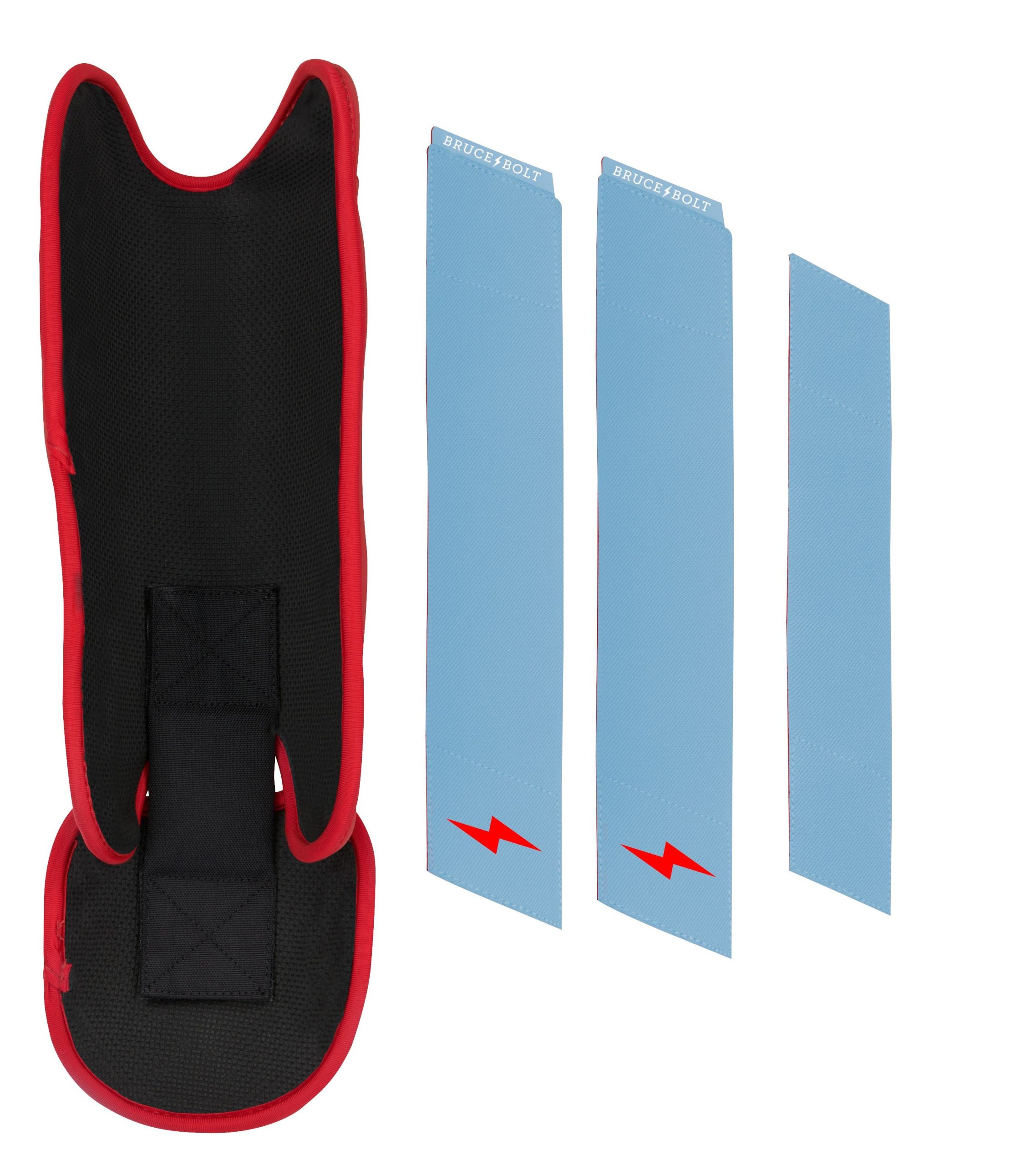 BRUCE BOLT’s PREMIUM PRO Leg & Ankle Guards feature a semi-moldable thermoplastic protective shell with a Cabretta leather outer and Shark Skin inner to keep the guard in place at the plate and while running the bases.? 2 wide removable elastic strap locks the Leg?guard in place providing maximum protection at the plate.