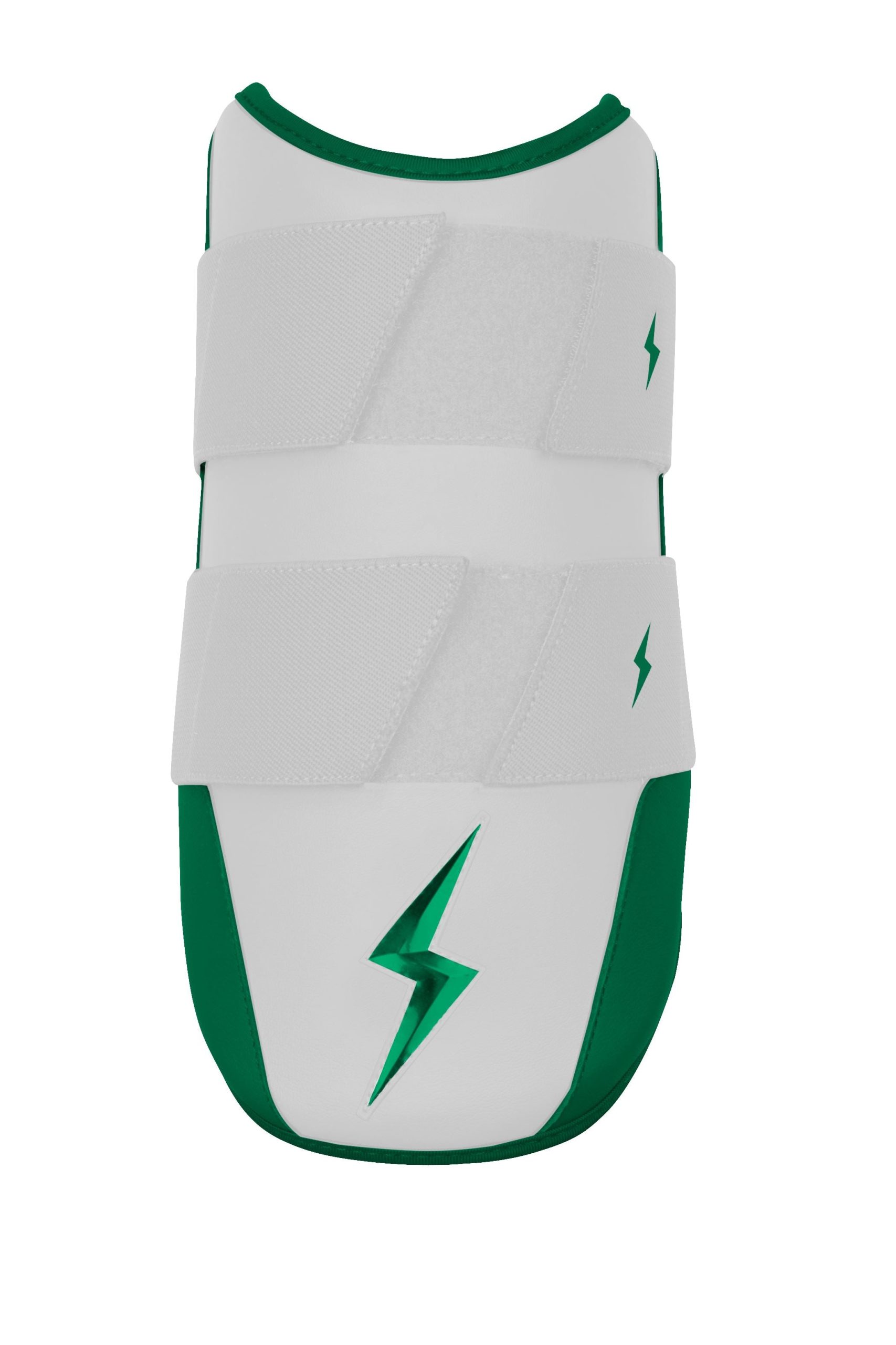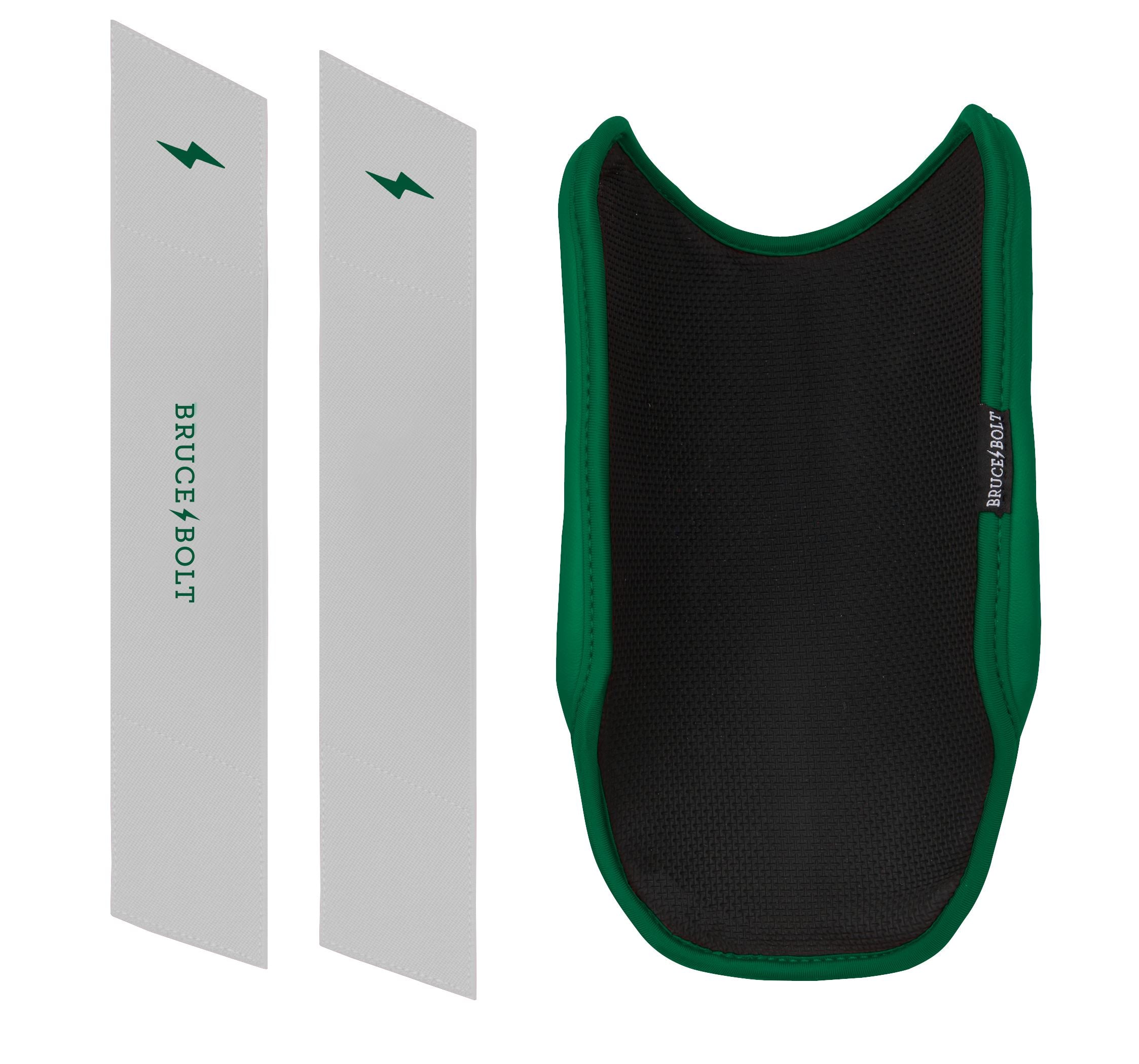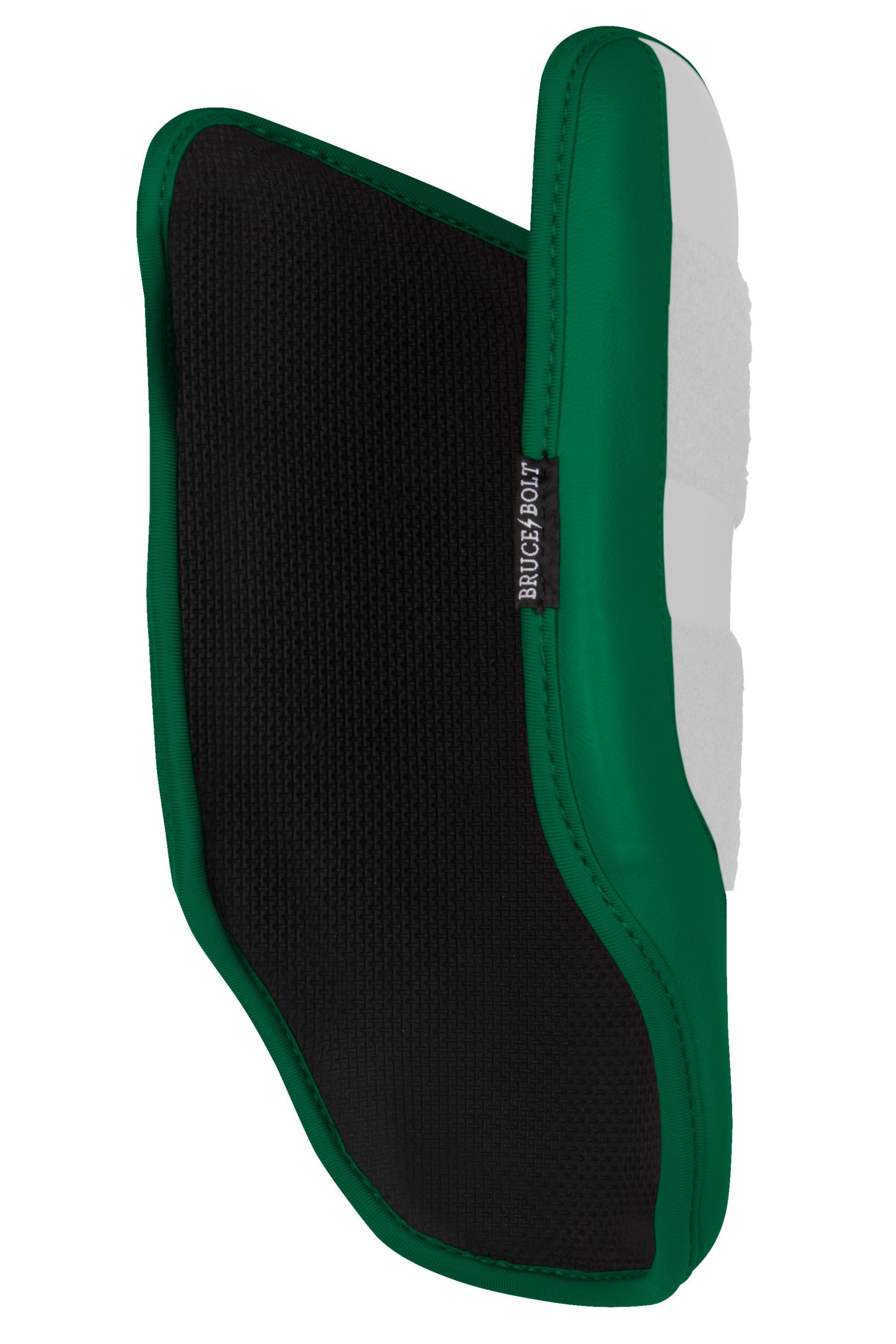 BRUCE BOLT’s PREMIUM PRO Elbow Guards feature a semi-moldable thermoplastic protective shell with a Cabretta leather outer and proprietary Sharkskin inner to prevent movement during the swing. 2 wide removable elastic strap locks the elbow guard in place providing maximum protection at the plate.