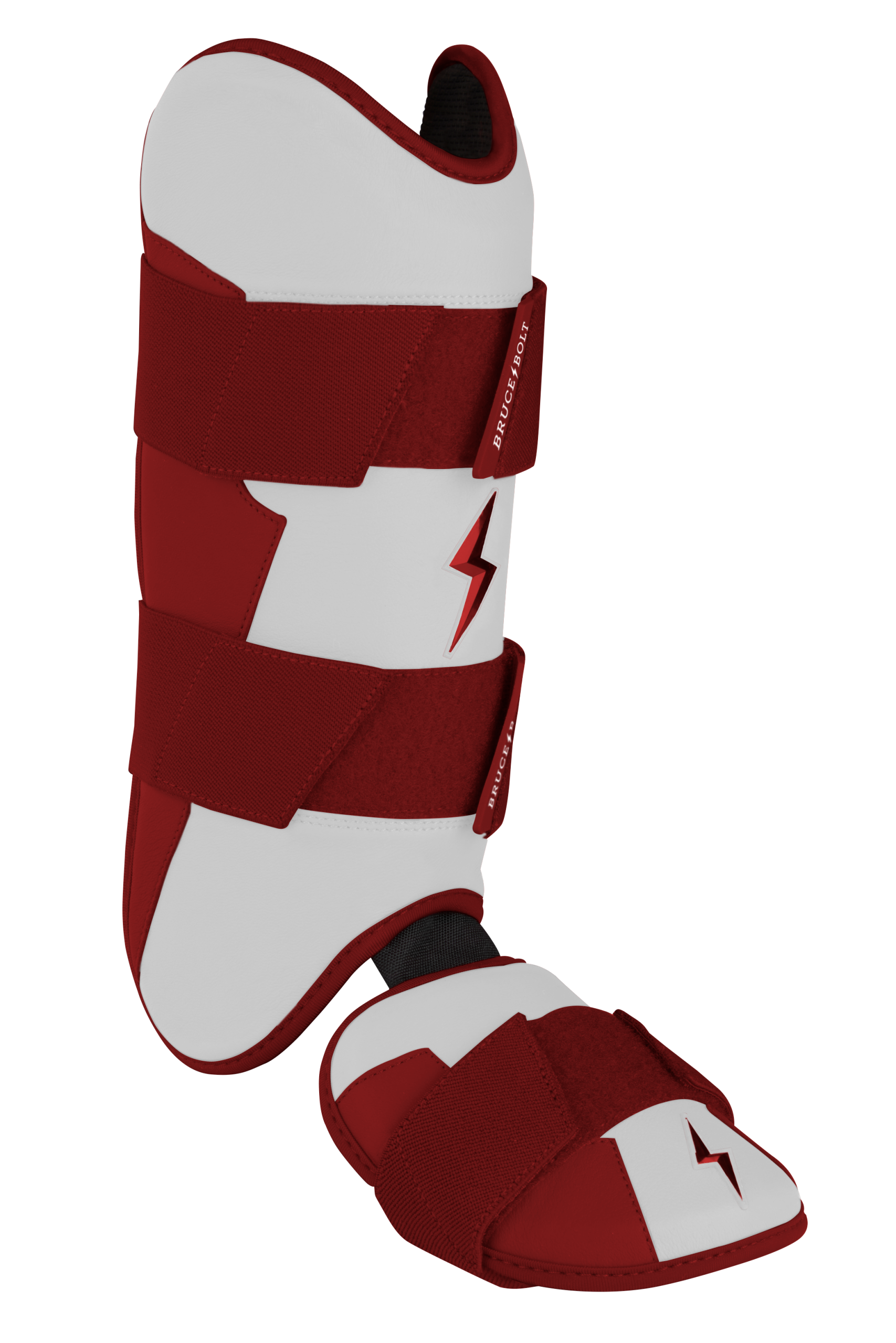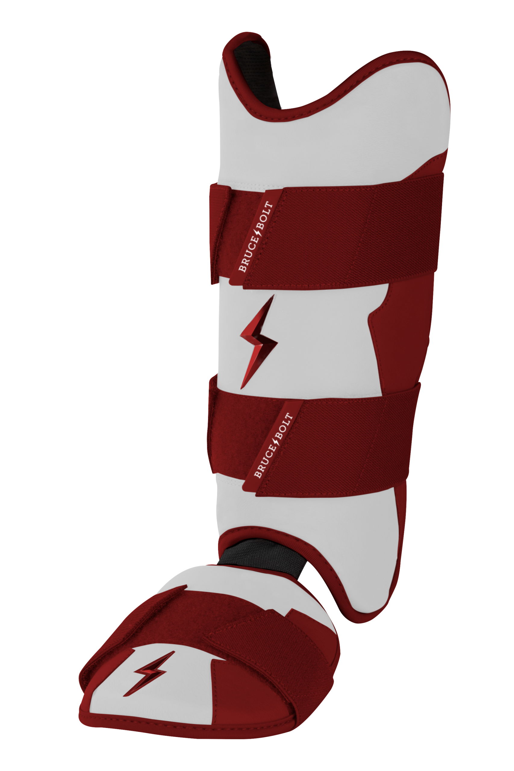 BRUCE BOLT’s PREMIUM PRO Leg & Ankle Guards feature a semi-moldable thermoplastic protective shell with a Cabretta leather outer and Sharkskin inner to keep the guard in place at the plate and while running the bases. 2 wide removable elastic strap locks the Leg guard in place providing maximum protection at the plate.