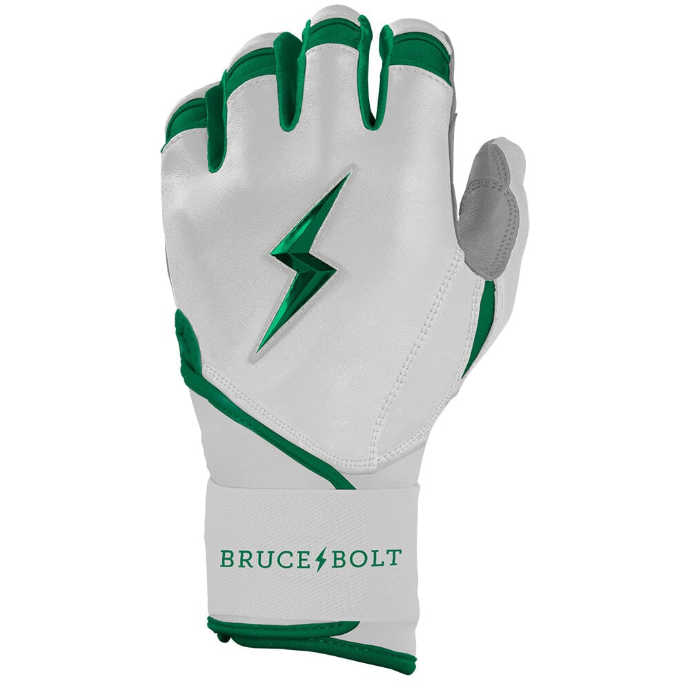 HIGHEST QUALITY. MOST DURABLE BATTING GLOVE IN BASEBALL: Each pair of BRUCE BOLT batting gloves are handmade by skilled craftsmen using only the highest quality 0.9mm Cabretta leather and stitching techniques which makes our gloves buttery soft but more durable than any other glove on the market.