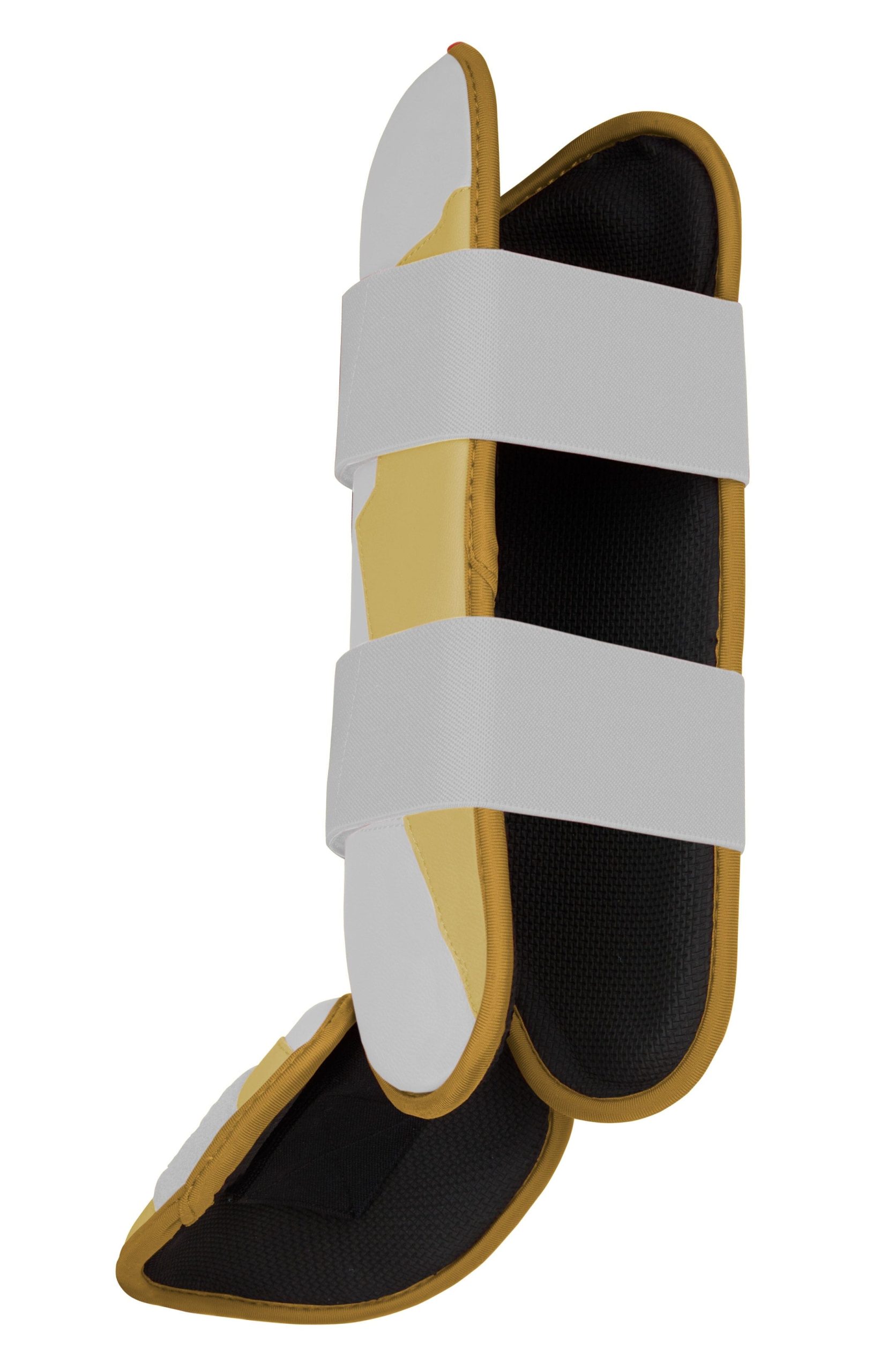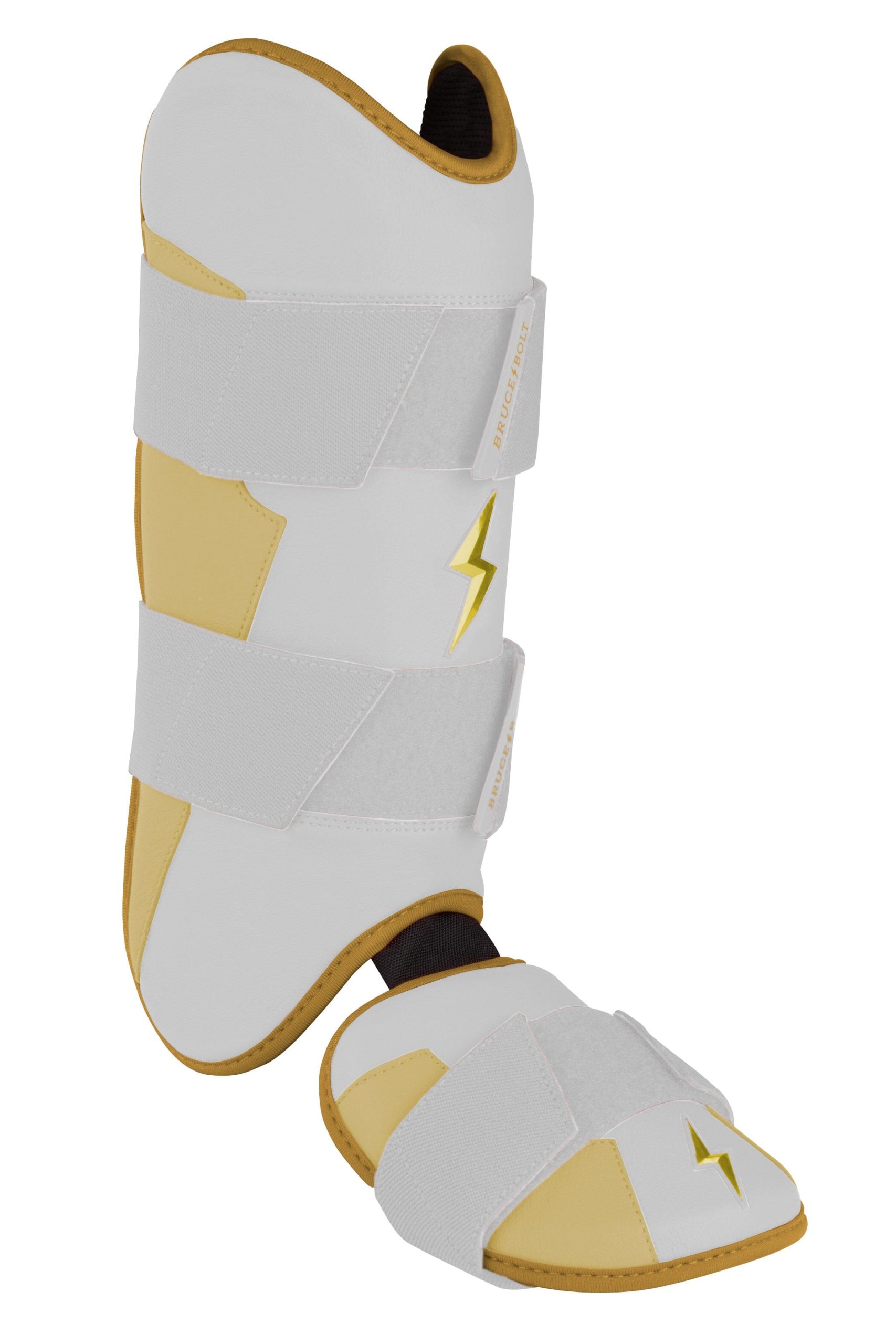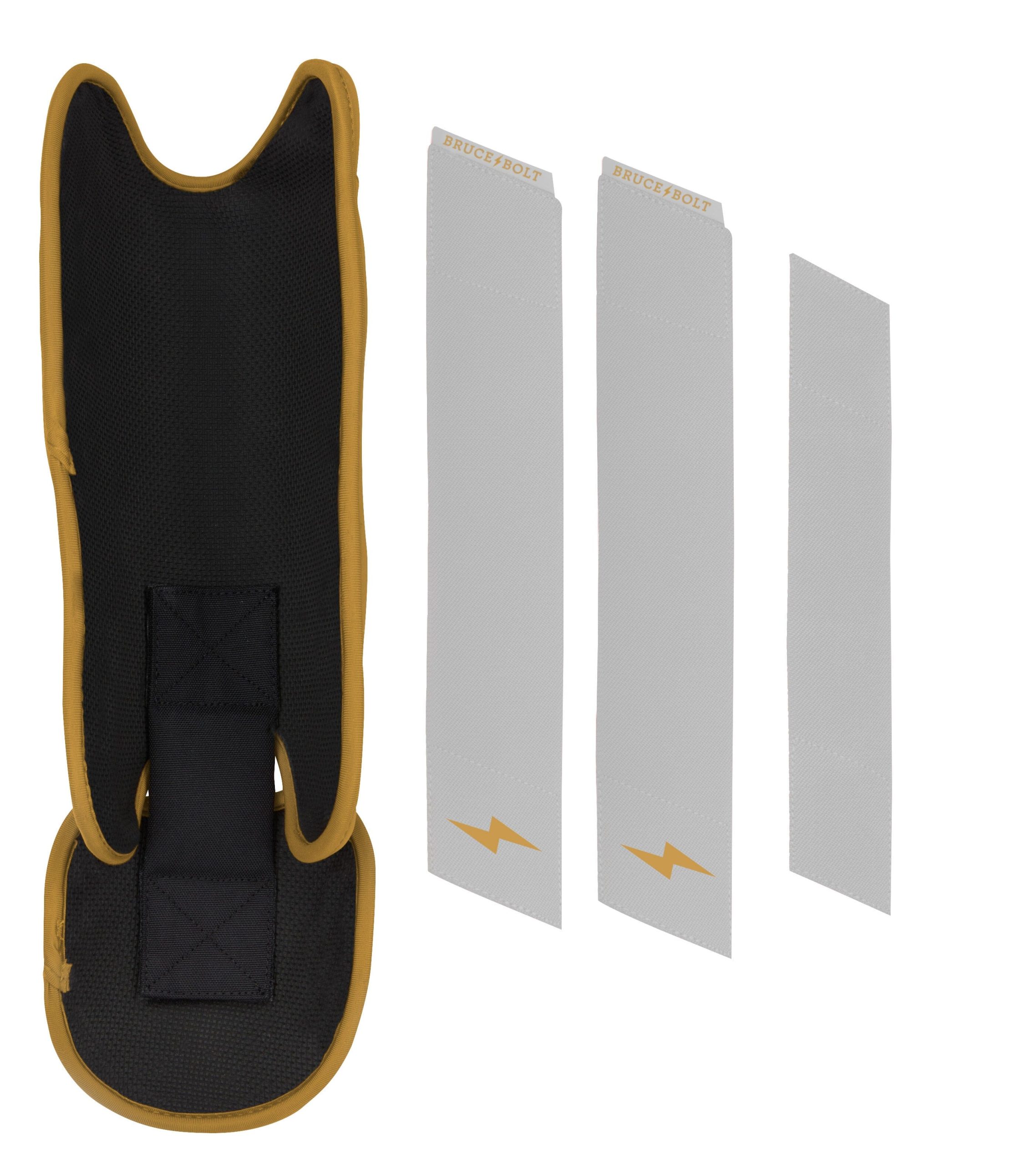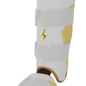 BRUCE BOLT’s PREMIUM PRO Leg & Ankle Guards feature a semi-moldable thermoplastic protective shell with a Cabretta leather outer and Shark Skin inner to keep the guard in place at the plate and while running the bases. 2 wide removable elastic strap locks the Leg guard in place providing maximum protection at the plate.