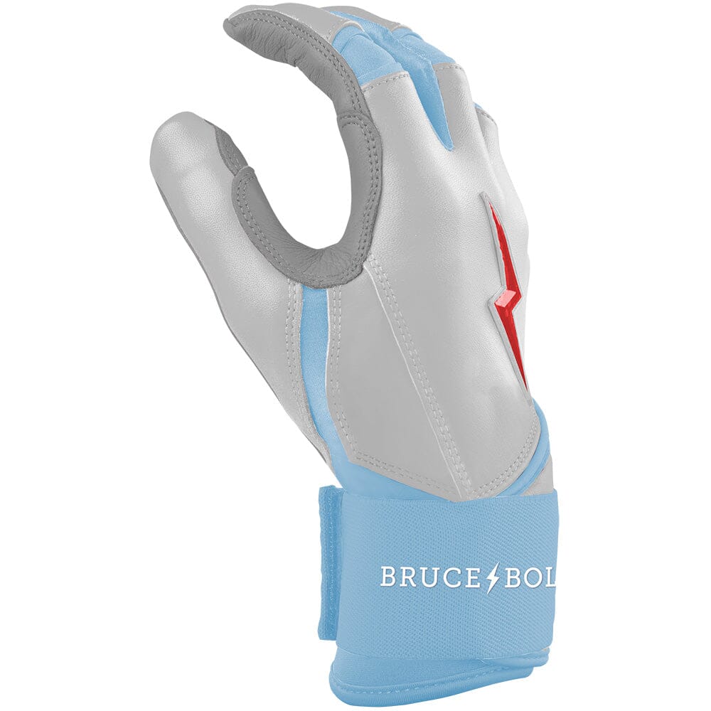 HIGHEST QUALITY. MOST DURABLE BATTING GLOVE IN BASEBALL: Each pair of BRUCE BOLT batting gloves are handmade by skilled craftsmen using only the highest quality 0.9mm Cabretta leather and stitching techniques which makes our gloves buttery soft but more durable than any other glove on the market.