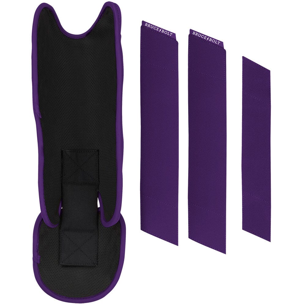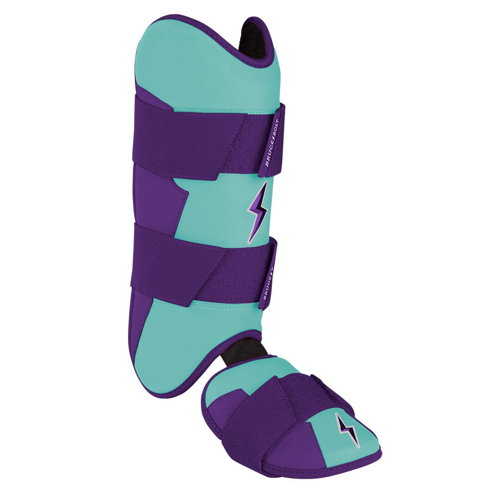 BRUCE BOLT’s PREMIUM PRO Leg & Ankle Guards feature a semi-moldable thermoplastic protective shell with a Cabretta leather outer and Shark Skin inner to keep the guard in place at the plate and while running the bases. 2 wide removable elastic strap locks the Leg guard in place providing maximum protection at the plate.