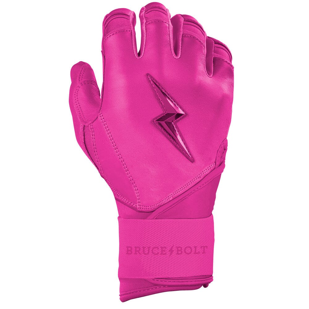 HIGHEST QUALITY. MOST DURABLE BATTING GLOVE IN BASEBALL: Each pair of BRUCE BOLT batting gloves are handmade by skilled craftsmen using only the highest quality 0.9mm Cabretta leather and stitching techniques which makes our gloves buttery soft but more durable than any other glove on the market.