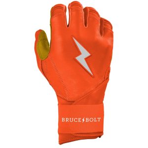 HIGHEST QUALITY. MOST DURABLE BATTING GLOVE IN BASEBALL: Each pair of BRUCE BOLT batting gloves are handmade by skilled craftsmen using only the highest quality 0.9mm Cabretta leather and stitching techniques which makes our gloves buttery soft but more durable than any other glove on the market.