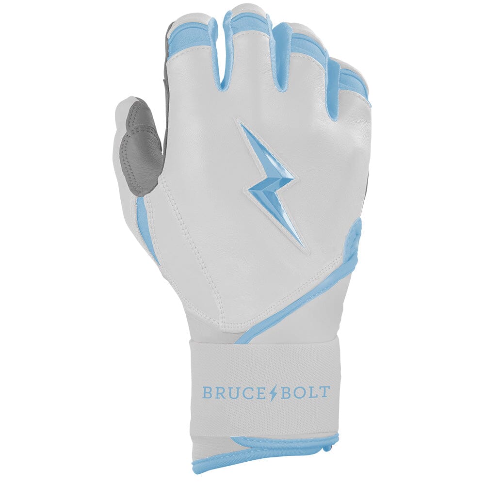 HIGHEST QUALITY. MOST DURABLE BATTING GLOVE IN BASEBALL: Each pair of BRUCE BOLT batting gloves are handmade by skilled craftsmen using only the highest quality 0.9mm Cabretta leather and stitching techniques which makes our gloves buttery soft but more durable than any other glove on the market.