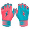 HIGHEST QUALITY. MOST DURABLE BATTING GLOVE IN BASEBALL: Each pair of BRUCE BOLT batting gloves are handmade by skilled craftsmen using only the highest quality 0.9mm Cabretta leather and stitching techniques which makes our gloves buttery soft but more durable than any other glove on the market.