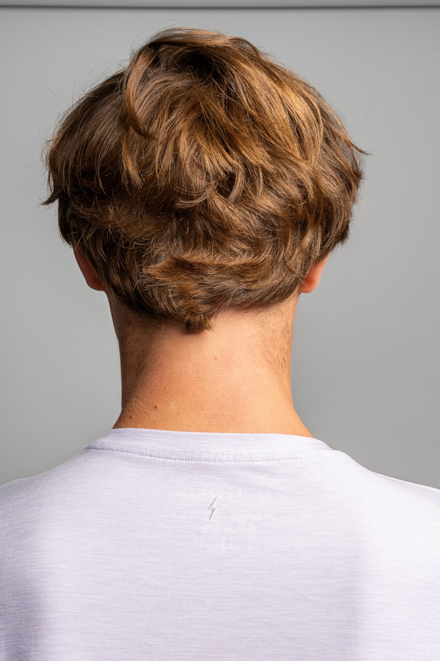 Our blank tees are branded with a stitched loop BOLT on the hemline and a small 3D silicone BOLT on the back of the neck.